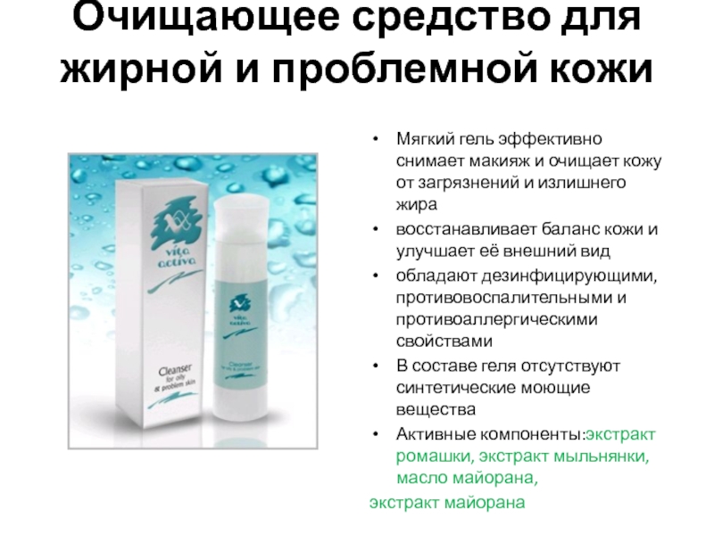 Слайд 5Очищающее средство для жирной и проблемной кожи