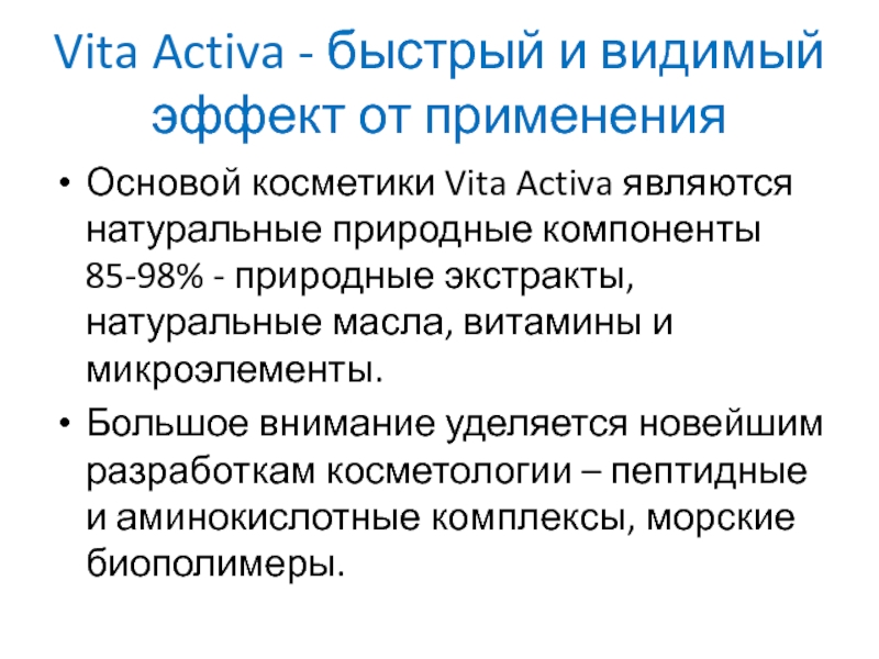 Слайд 2Vita Activa - быстрый и видимый эффект от применения