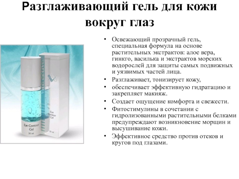 увлажняет и разглаживает кожу.