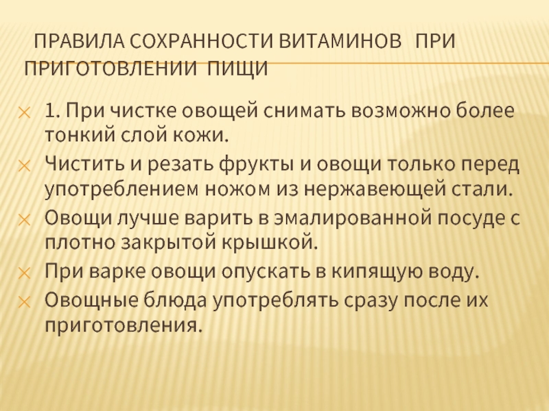 Слайд 27 ПРАВИЛА СОХРАННОСТИ ВИТАМИНОВ ПРИ ПРИГОТОВЛЕНИИ ПИЩИ