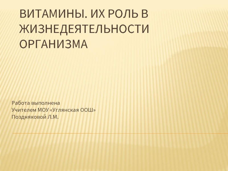 Слайд 1ВИТАМИНЫ. ИХ РОЛЬ В ЖИЗНЕДЕЯТЕЛЬНОСТИ ОРГАНИЗМА