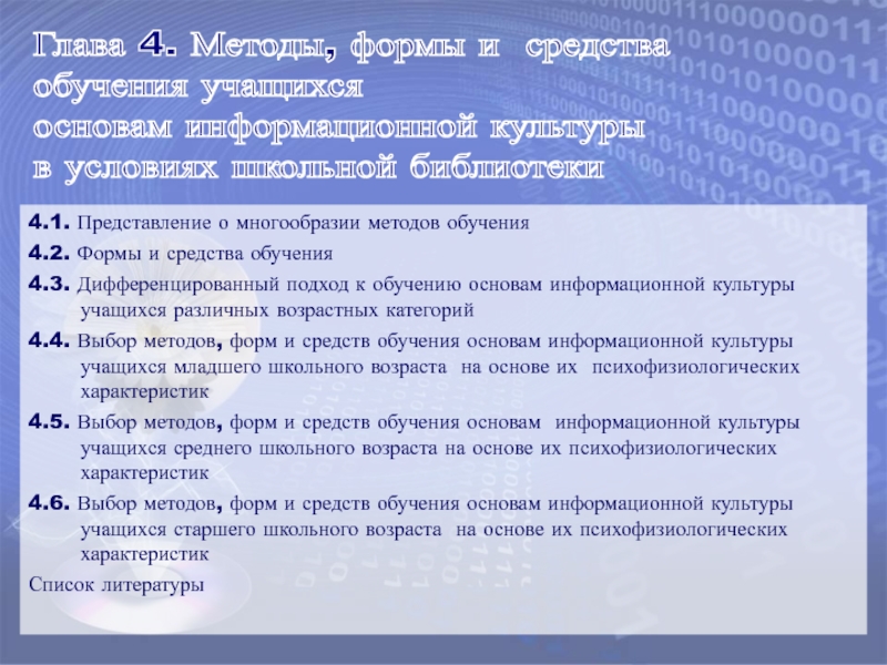 4.6. Выбор методов, форм и средств обучения основам информационной культуры учащихся старшего школьного возраста на основе их психофизиологических характеристик