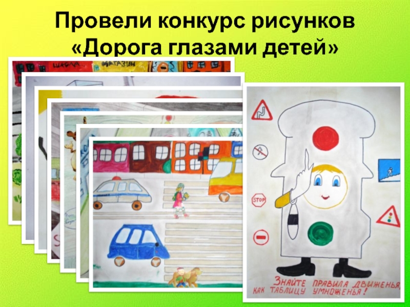 Слайд 10 Провели конкурс рисунков «Дорога глазами детей»