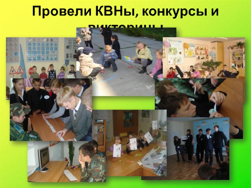 Слайд 14 Провели КВНы, конкурсы и викторины