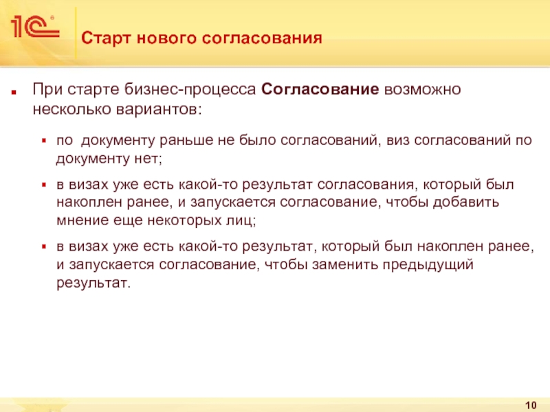 При старте бизнес-процесса Согласование возможно несколько вариантов: