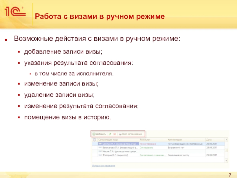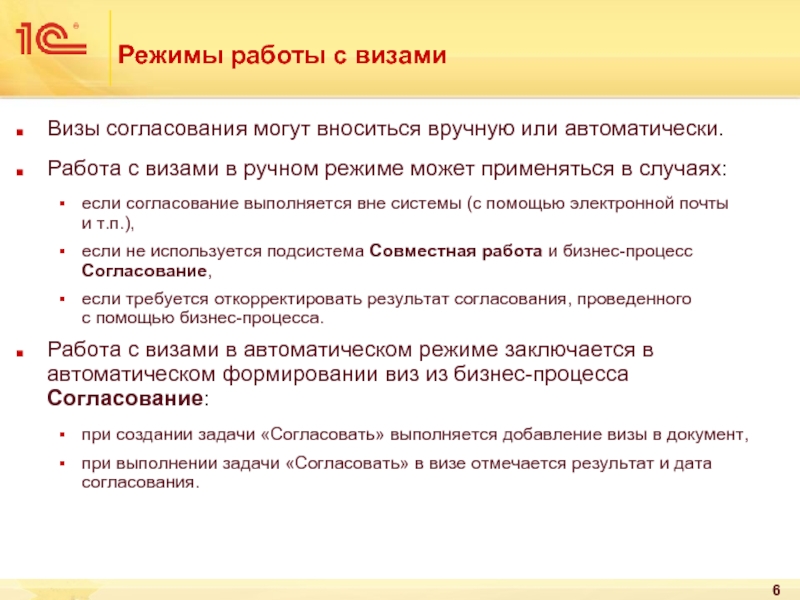 Работа с визами в автоматическом режиме заключается в автоматическом формировании виз из бизнес-процесса Согласование: