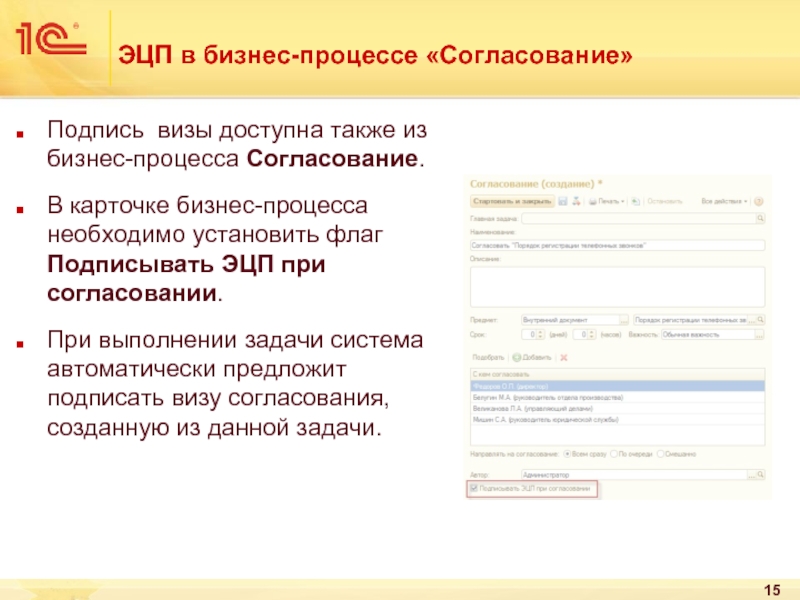 Слайд 15ЭЦП в бизнес-процессе «Согласование»