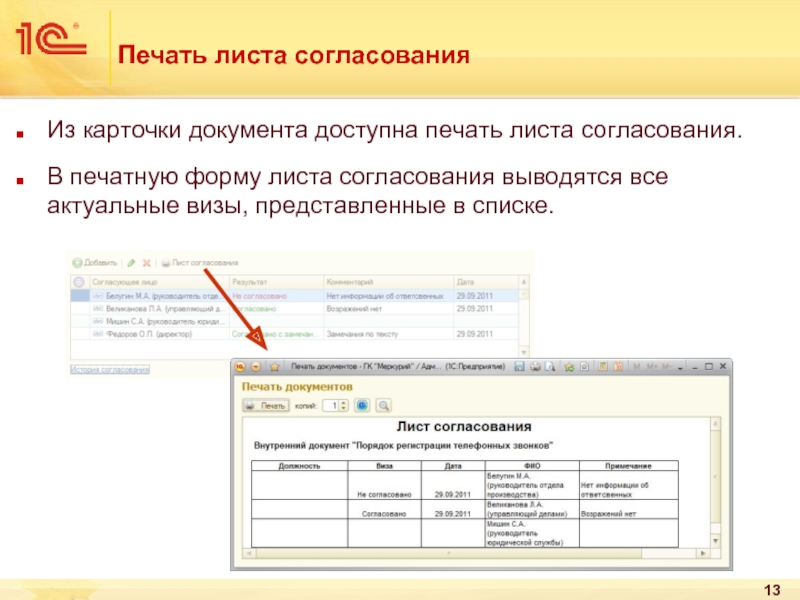 результат согласования автоматически фиксируется в визе при выполнении задачи;