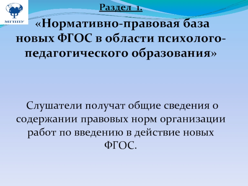 «Нормативно-правовая база новых ФГОС в области психолого-педагогического образования»