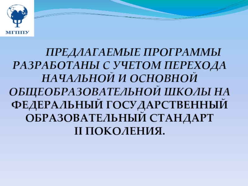 Слайд 6 ПРЕДЛАГАЕМЫЕ ПРОГРАММЫ РАЗРАБОТАНЫ С УЧЕТОМ ПЕРЕХОДА