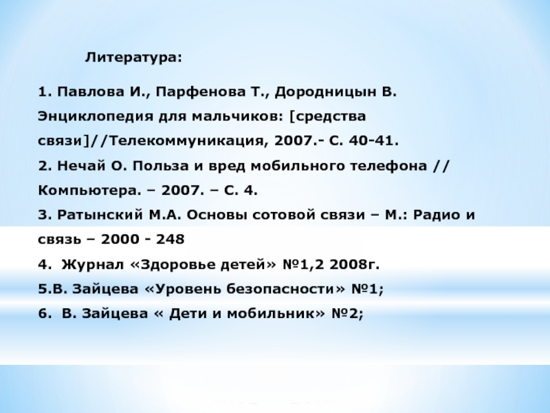 2. Нечай О. Польза и вред мобильного телефона // Компьютера. – 2007. – С. 4.