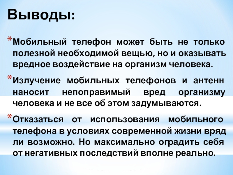 Отказаться от использования мобильного телефона в условиях современной жизни вряд ли возможно. Но максимально оградить себя от негативных последствий вполне реально.