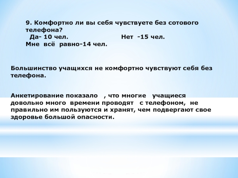 Слайд 219. Комфортно ли вы себя чувствуете без сотового телефона?