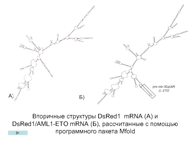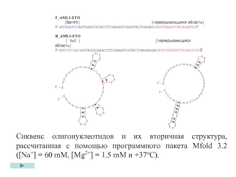 Сиквенс олигонуклеотидов и их вторичная структура, рассчитанная с помощью программного пакета Mfold 3.2 ([Na+] = 60 mM, [Mg2+] = 1.5 mM и +37oC).