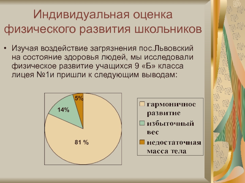 Воздействие загрязнения пос.Львовский на физическое развитие учащихся лицея №1.