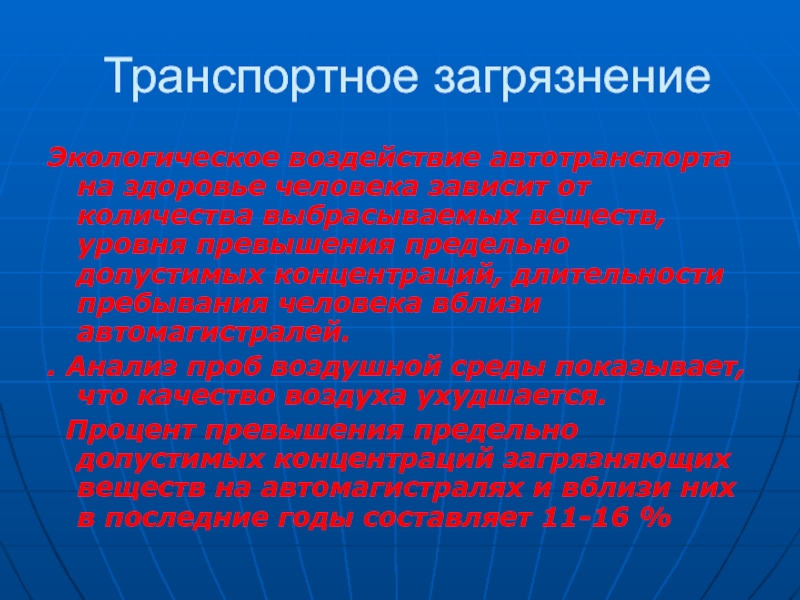 Экологическое воздействие автотранспорта на здоровье человека зависит от количества выбрасываемых