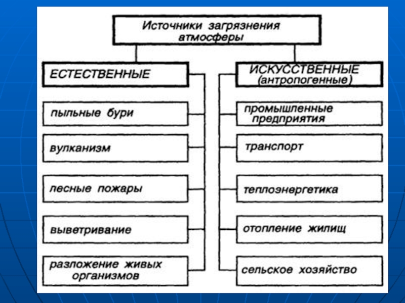 Естественными источниками загрязнений атмосферного воздуха служат прежде всего