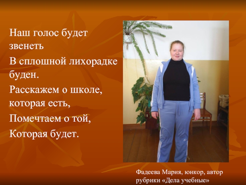 Фадеева Мария, юнкор, автор рубрики «Дела учебные»