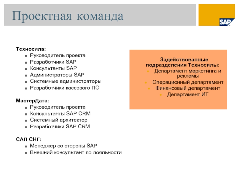 Задействованные подразделения Техносилы: