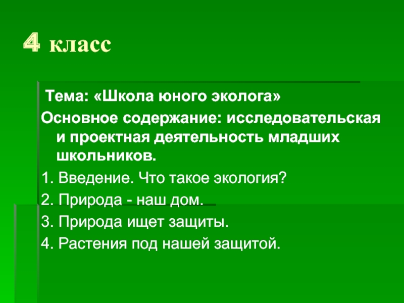 Тема: «Школа юного эколога»