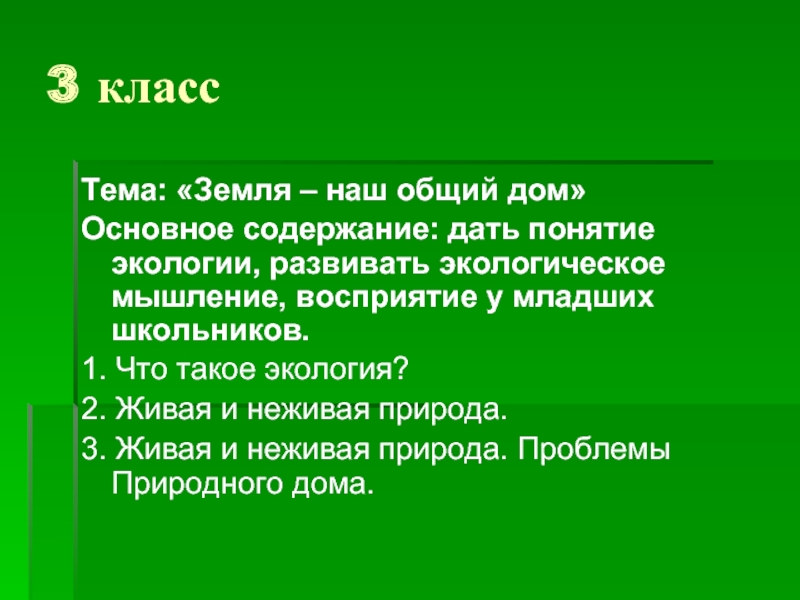 Основное содержание: дать понятие экологии,
