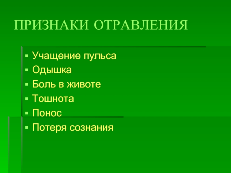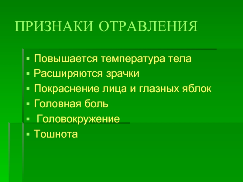 Слайд 24ПРИЗНАКИ ОТРАВЛЕНИЯ