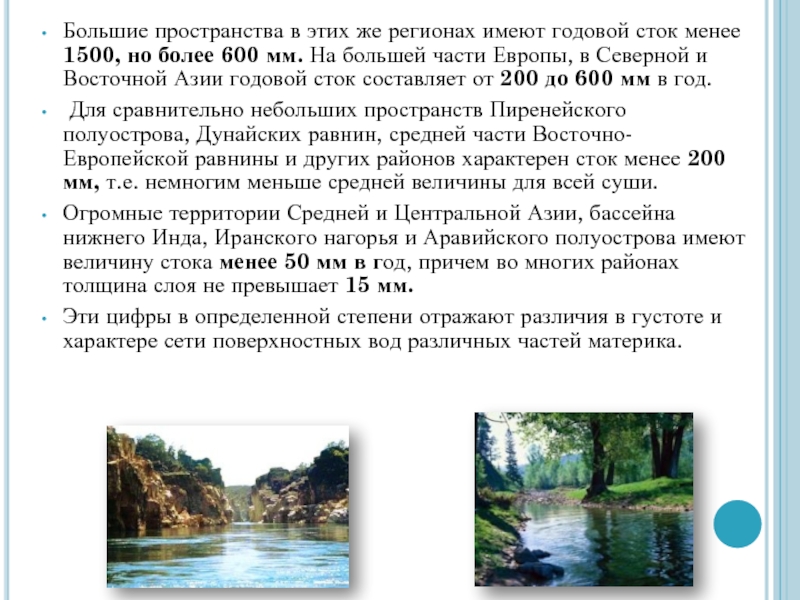 но более 600 мм. На большей части Европы, в Северной и Восточной Азии годовой сток составляет от 200 до 600 мм в год.