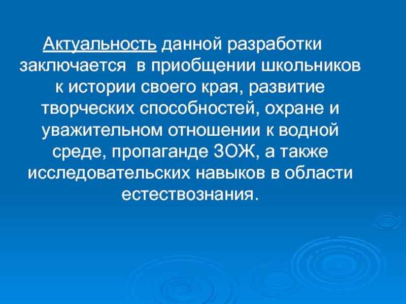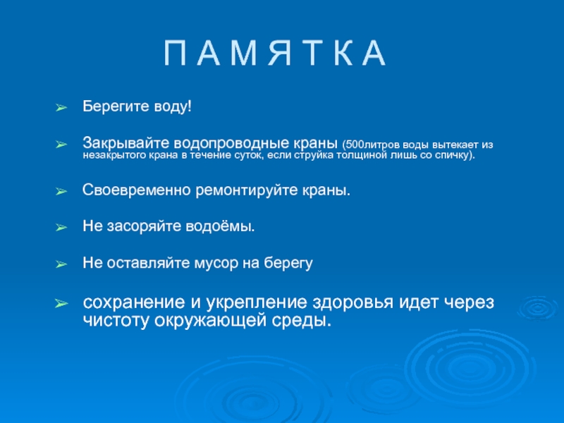 Ознакомить со значением экологически чистой воды в жизни человека.