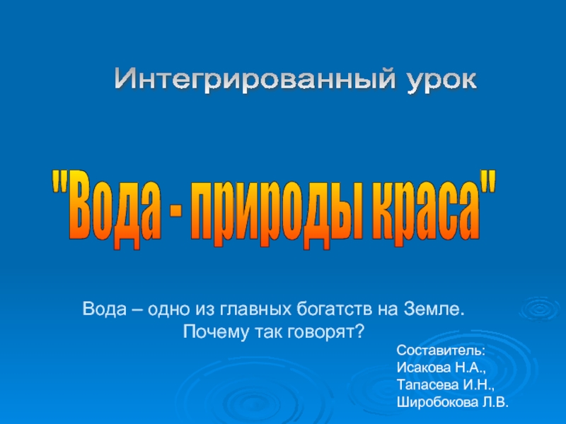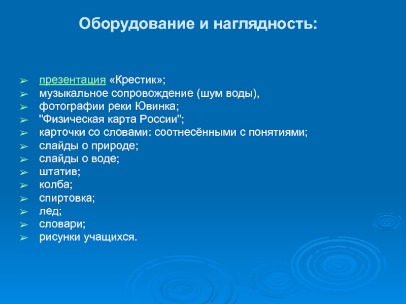 Закрепление  системы представлений учащихся о разнообразии состояний  и свойствах воды, ее значении в природе и жизни человека.