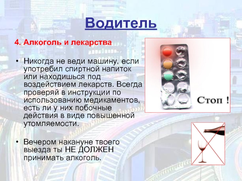 Вечером накануне твоего выезда ты НЕ ДОЛЖЕН принимать алкоголь.