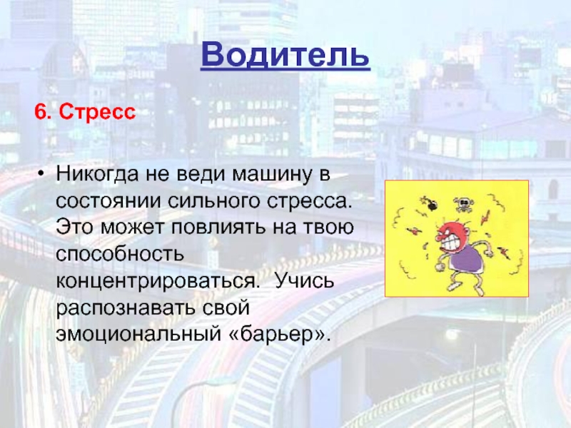 Никогда не веди машину в состоянии сильного стресса. Это может