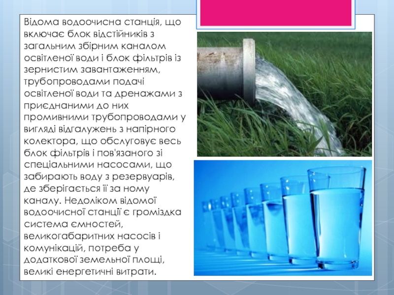 Слайд 9Відома водоочисна станція, що включає блок відстійників з загальним збірним каналом