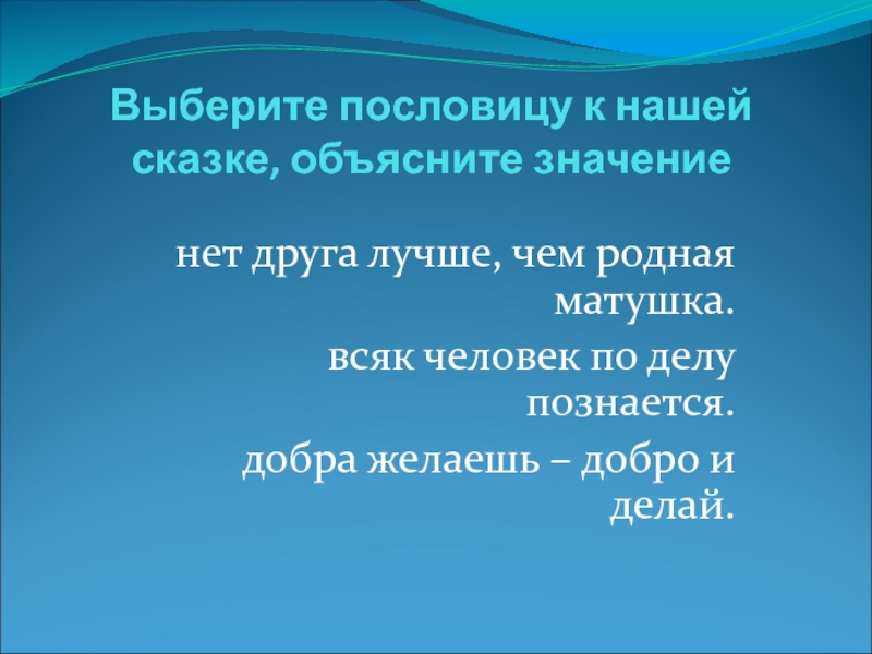 2. Развивать умения давать полные ответы на вопросы по содержанию сказки;