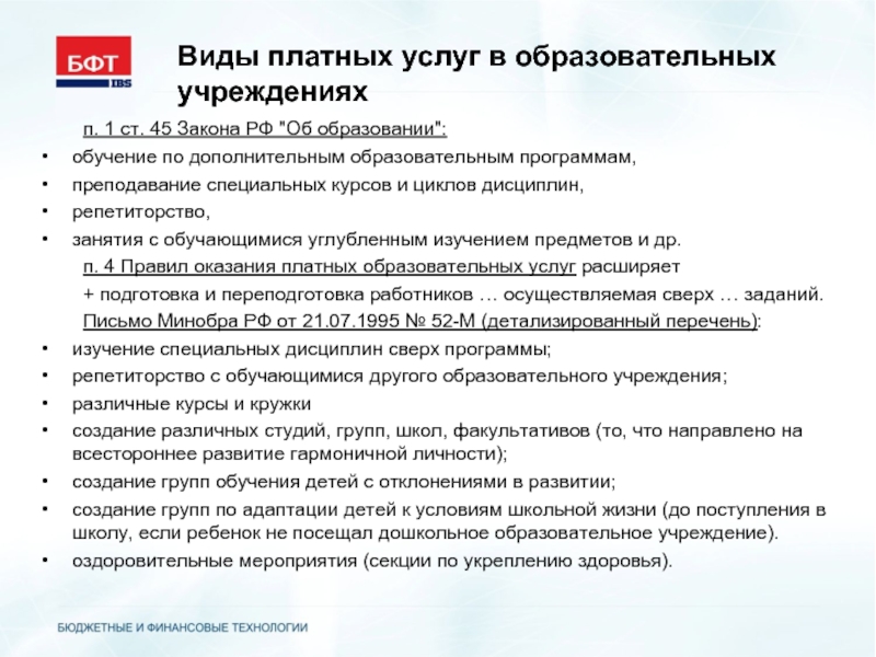Возможность выделения части видов деятельности для предоставления на платной основе