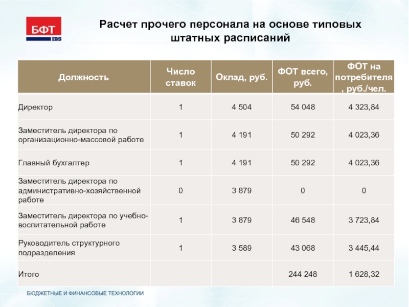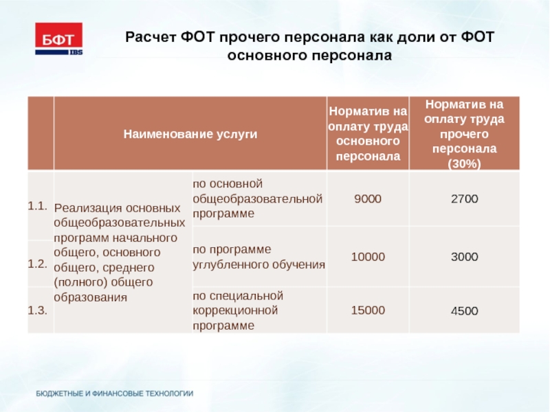 Нормативные затраты на оплату труда основного (педагогического) персонала