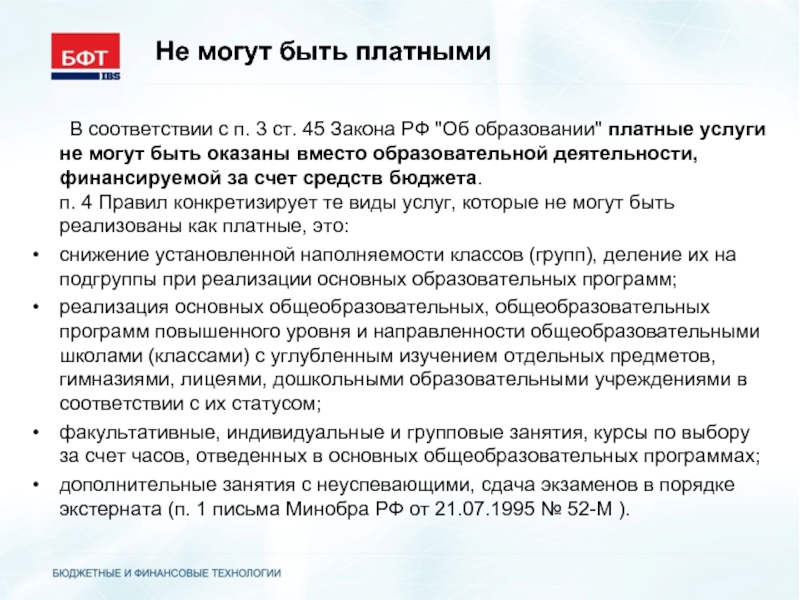 Невозможность выделения части видов деятельности для предоставления на платной основе
