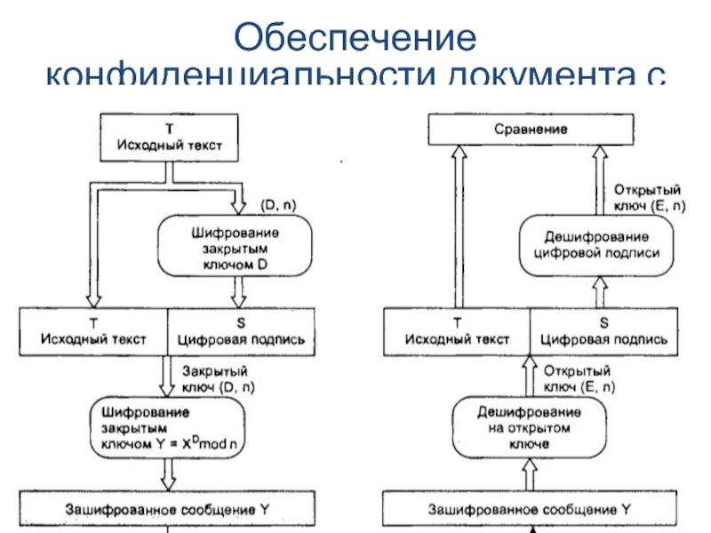 Слайд 67Обеспечение конфиденциальности документа с цифровой подписью