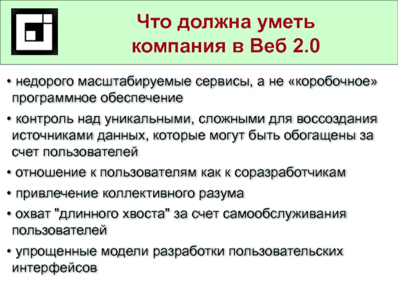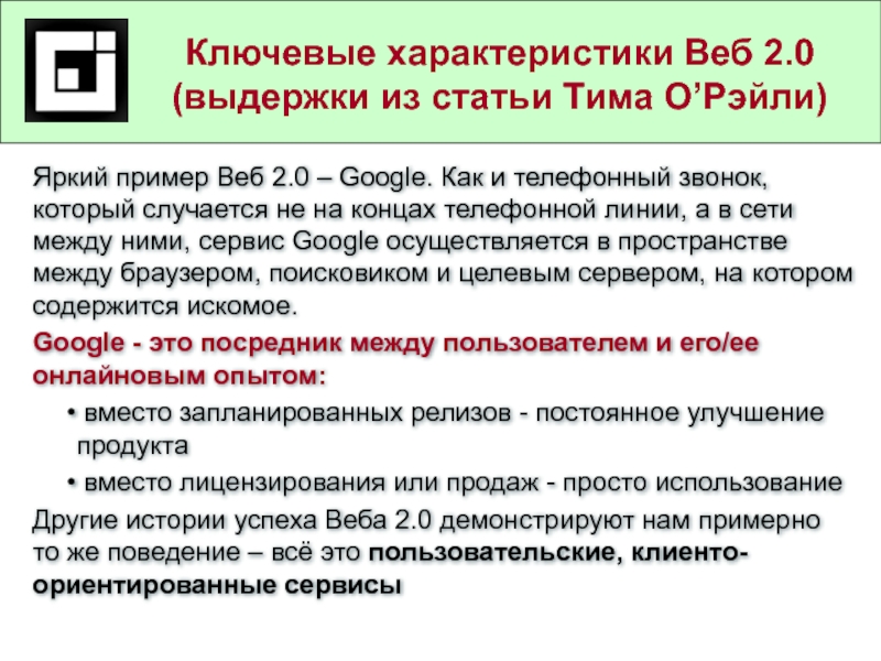 Ключевые характеристики Веб 2.0