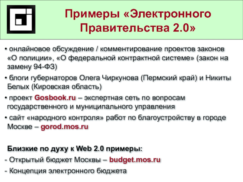 Примеры «Электронного Правительства 2.0»