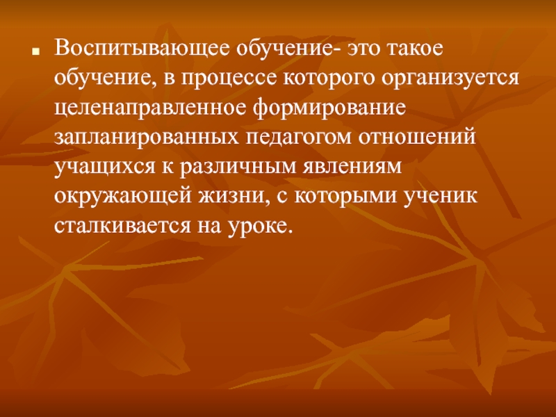 Слайд 3Воспитывающее обучение- это такое обучение, в процессе которого организуется целенаправленное формирование