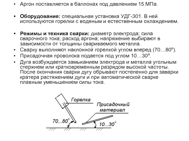 Режимы и техника сварки: диаметр электрода; сила сварочного тока; расход аргона; напряжение выбирают в зависимости от толщины свариваемого металла.
