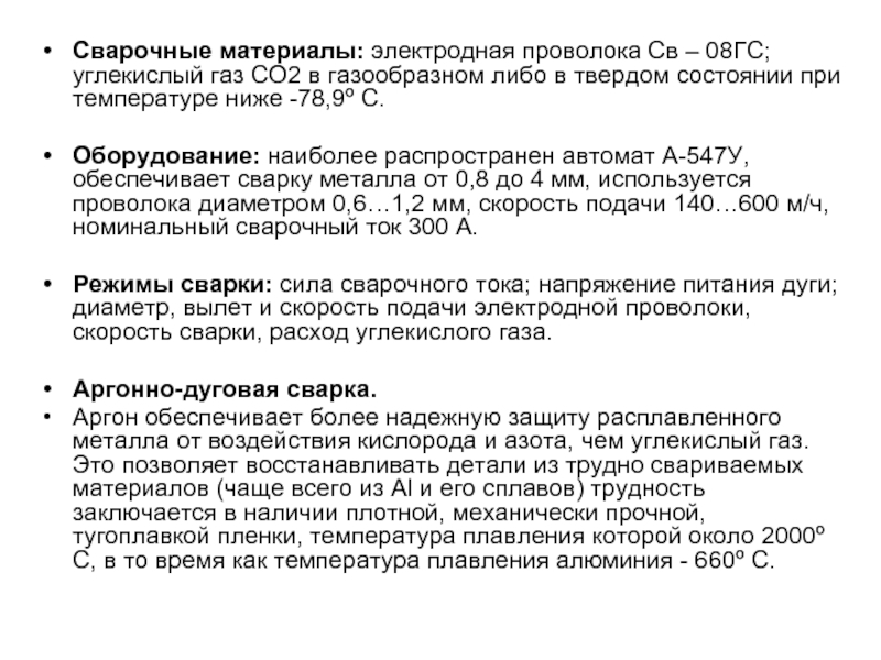 Слайд 7Сварочные материалы: электродная проволока Св – 08ГС; углекислый газ СО2 в