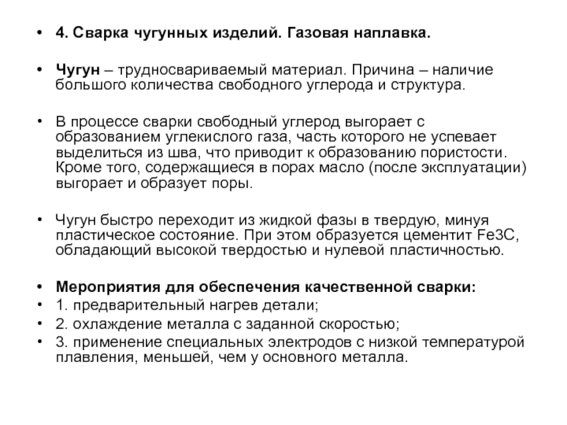Слайд 144. Сварка чугунных изделий. Газовая наплавка.