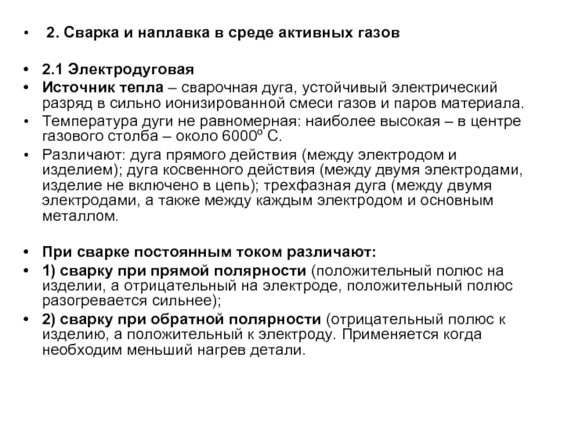 Слайд 5 2. Сварка и наплавка в среде активных газов