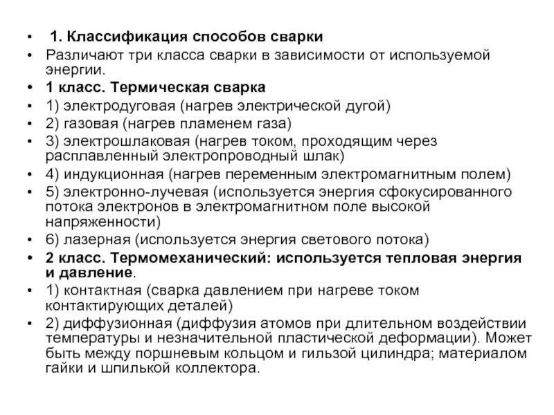 5) сварка трением (сварка давлением, когда нагрев осуществляется трением вызываемым вращением друг относительно друга свариваемых частей).
