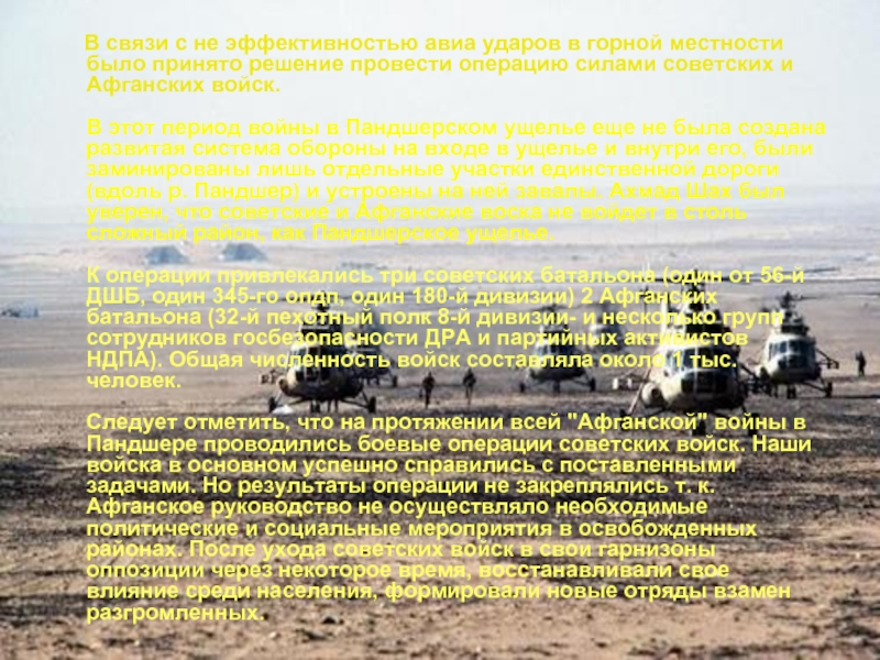горной местности было принято решение провести операцию силами советских и Афганских войск.
