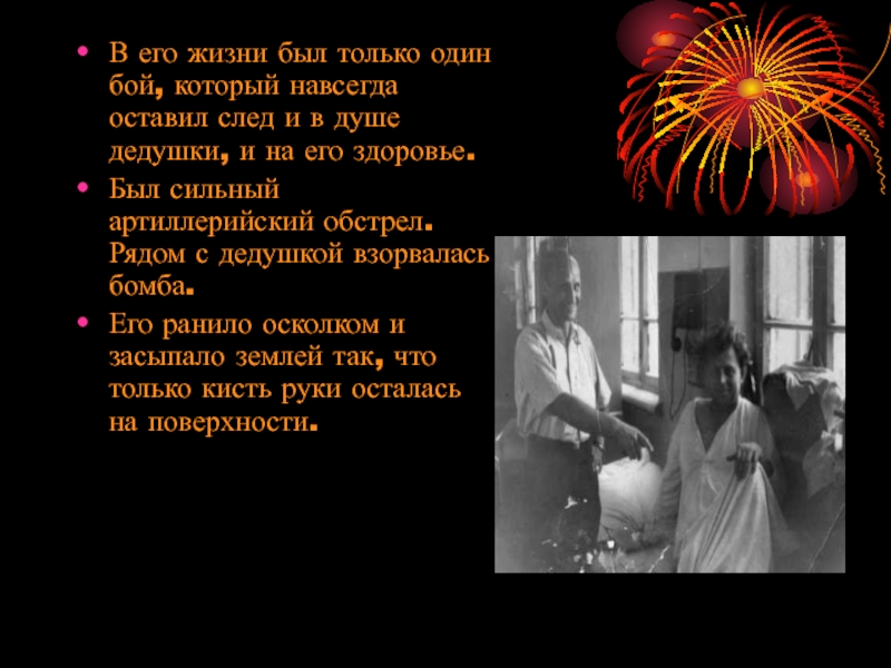 Был сильный артиллерийский обстрел. Рядом с дедушкой взорвалась бомба.