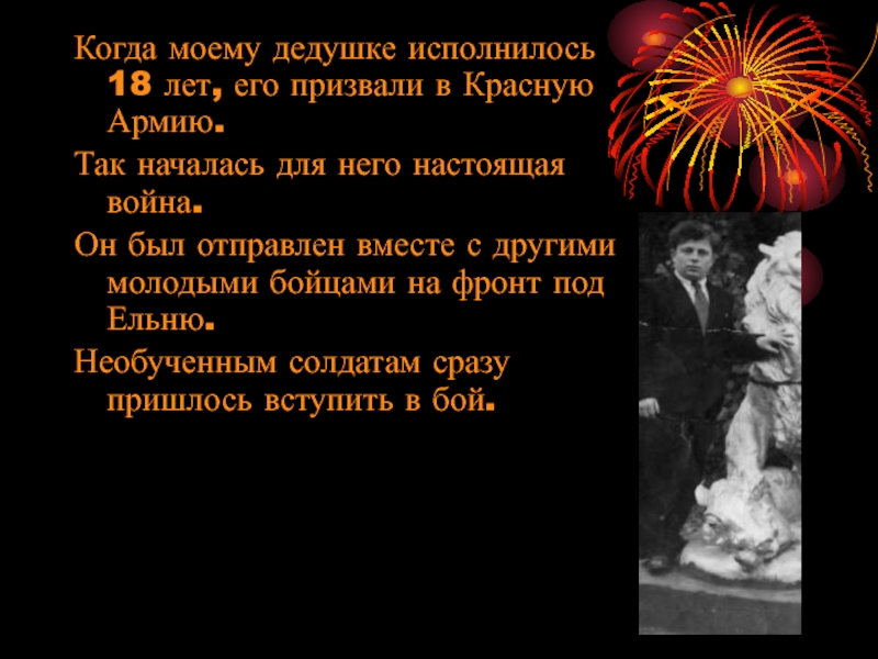 Слайд 3Когда моему дедушке исполнилось 18 лет, его призвали в Красную Армию.