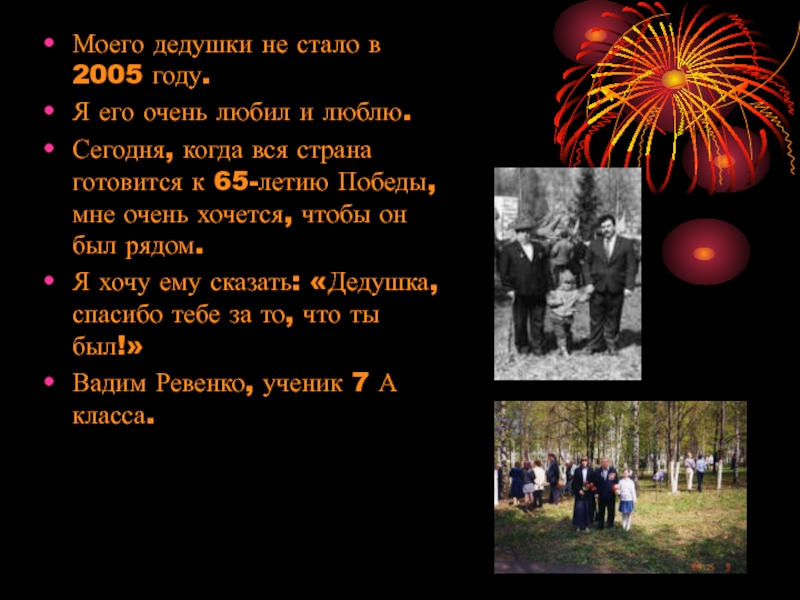 Слайд 10Моего дедушки не стало в 2005 году.