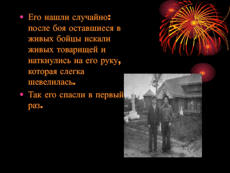 Слайд 5Его нашли случайно: после боя оставшиеся в живых бойцы искали живых
